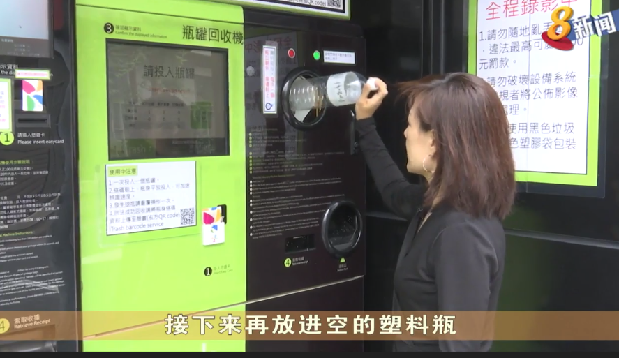 首先把你的交通悠游卡插入,接下來再放進空的塑料瓶,而機器會將你投入塑料瓶的數量,加值到你的交通悠游卡。